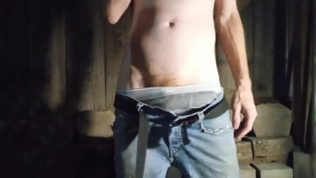 Horny guy jerks off on a smoke break