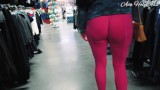 Leggings rose qui moule la chatt et les fesses en public