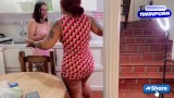 Fóllame lentamente para que mi madrastra no escuche! Divertido trío bisexual con dos chicas tetonas