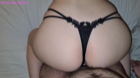 Doggystyle In Black Thong And Cumshot On Ass