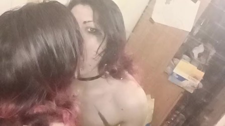 Ashley Valentine jerks off, spits on her face and kissing with the mirror