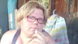 Smoker shows off boobs