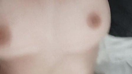 FRESHLY SHAVED PINK PUSSY having fun with her BIG WHITE DILDO
