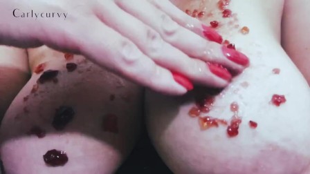 Big boobs covered in jelly with dirty talk!
