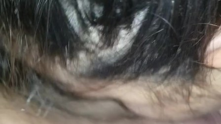 Wife gets on her knees and deep throats me and licks my balls