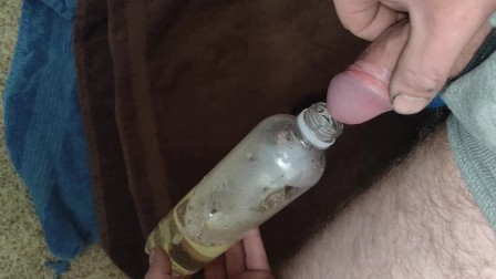 Filling a bottle with piss~