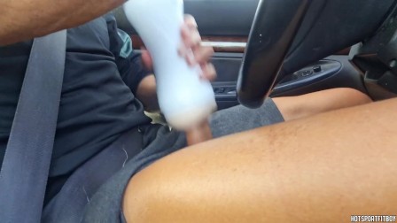 Pervert masturbates with a fleshlight - driving and moaning very loudly - Hotsportfitboy