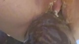 Gapped pussy sits on xxxxl goliath