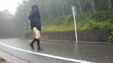 Transgender honoka peeing openly in the center of the road.