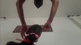 Tied up, ballgagged and hooded. Throated with no mercy and swallow cum
