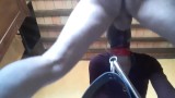 tied, blinfolded and ball gagged then has to suck a big cock, rough deepthroat