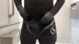 Latex gloves cock stroking public restroom creamy load relief