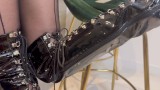 British MILF Teasing in Seamed Pantyhose, Leather Boots and Leather Gloves