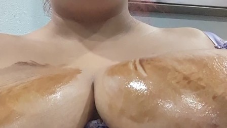 Puerto Rican Licking Chocolate Syrup Off Tits
