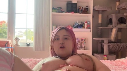 Chubby teen plays with pink dildo