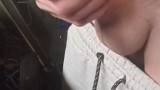 Cock jerking in a cold workshop