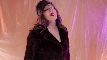 ASMR fur coat fetish, vaping smoking with short leather gloves