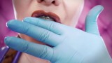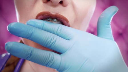 ASMR: eating food with braces, blue nitrile gloves fetish (SFW video)