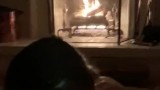 Sexy ass bitch sucks cock in front of the fireplace