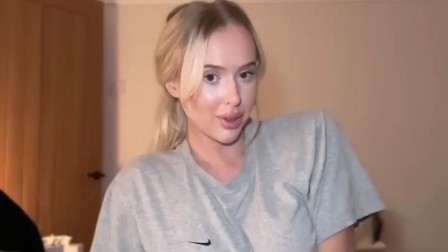 Cute BLONDE 18TEEN YEAR OLD does night time stretching (GUESS WHAT COMES OFF FIRST)