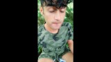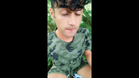 Twink drinks fresh cum from used condom till last drop outdoor