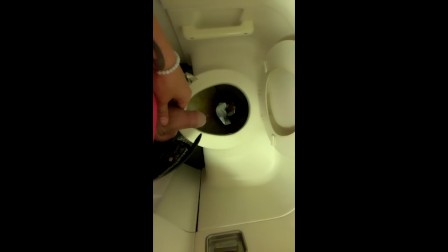 Teen piss on the airplane toilet - thick soft uncut cock