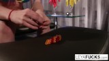 Leya Falcon shows puts candy inside her ass