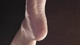 Bored goth girl ignores you under her desk dangling feet and flipping you off