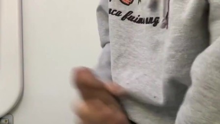 IT GETS VERY HARD ON THE PLANE AND I GO TO THE BATHROOM TO PLAY