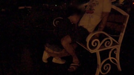 A young couple is having sex on a roadside bench.