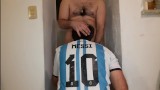 Oso coge a su amigo del futbol y se moja todo .