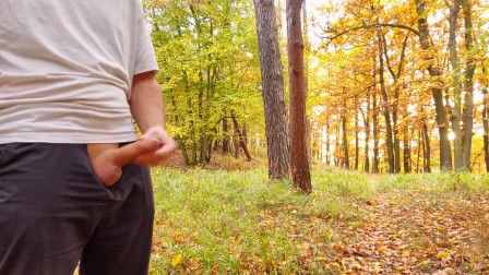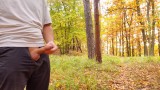 Nice cock cumming in forest in fine rain