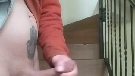Me masturbo en las escaleras mientras mi vecina habla por teléfono en el garage