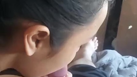 STEP-SISTER gives a good BLOWJOB for good morning - she SUCKS THE COCK LIKE AN EXPERT