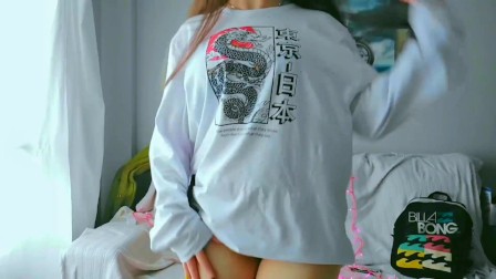Just a cute teenager wearing a big tshirt and cute socks. Home masturbation
