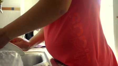 Simplemente lavando los platos después de un buen almuerzo