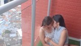 Passionate kisses with my ex-girlfriend and I caress her delicious pussy on the balcony
