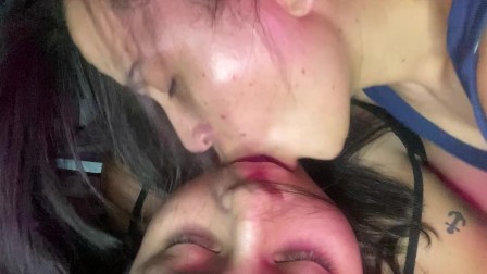 A naughty girl sucks my huge tongue