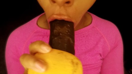 Big Tits Girl Wet Down Double Dick Dildo With Her Favorite Fruit!!!POV